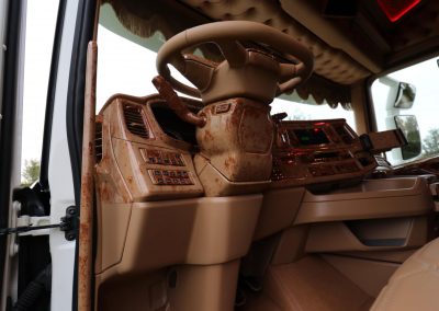 Deze vrachtwagen is voorzien van een uniek nieuw interieur door Truckstyling Lunteren.
